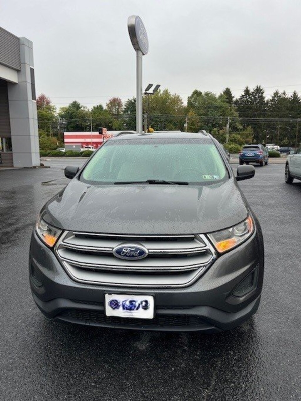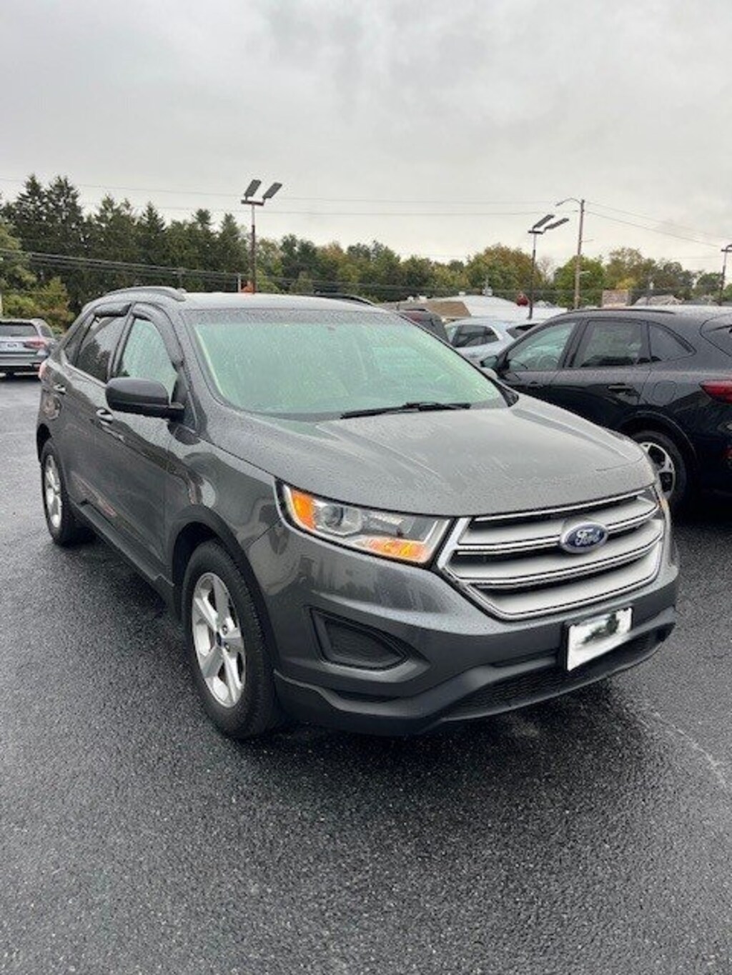 Certified. Bronze 2016 Ford Edge SE AWD 6-Speed Automatic EcoBoost 2.0L I4 GTDi DOHC Turbocharged VCT AWD, 4-Wheel Disc Brakes, 6 Speakers, ABS brakes, Air Conditioning, AM/FM radio, Axle Ratio: 3.16, Brake assist, Bumpers: body-color, Cloth Bucket Seats, Compass, Delay-off headlights, Driver door bin, Driver vanity mirror, Dual front impact airbags, Dual front side impact airbags, Electronic Stability Control, Emergency communication system, Equipment Group 100A, Exterior Parking Camera Rear, Four wheel independent suspension, Front anti-roll bar, Front Bucket Seats, Front Center Armrest w/Storage, Front reading lights, Fully automatic headlights, Illuminated entry, Knee airbag, Leather Shift Knob, Low tire pressure warning, Occupant sensing airbag, Outside temperature display, Overhead airbag, Overhead console, Panic alarm, Passenger door bin, Passenger vanity mirror, Power door mirrors, Power steering, Power windows, Rear anti-roll bar, Rear reading lights, Rear seat center armrest, Rear window defroster, Rear window wiper, Remote keyless entry, Speed control, Speed-Sensitive Wipers, Split folding rear seat, Spoiler, Steering wheel mounted audio controls, SYNC, Tachometer, Telescoping steering wheel, Tilt steering wheel, Traction control, Trip computer, Variably intermittent wipers, Wheels: 18" Aluminum Painted Sparkle Silver.