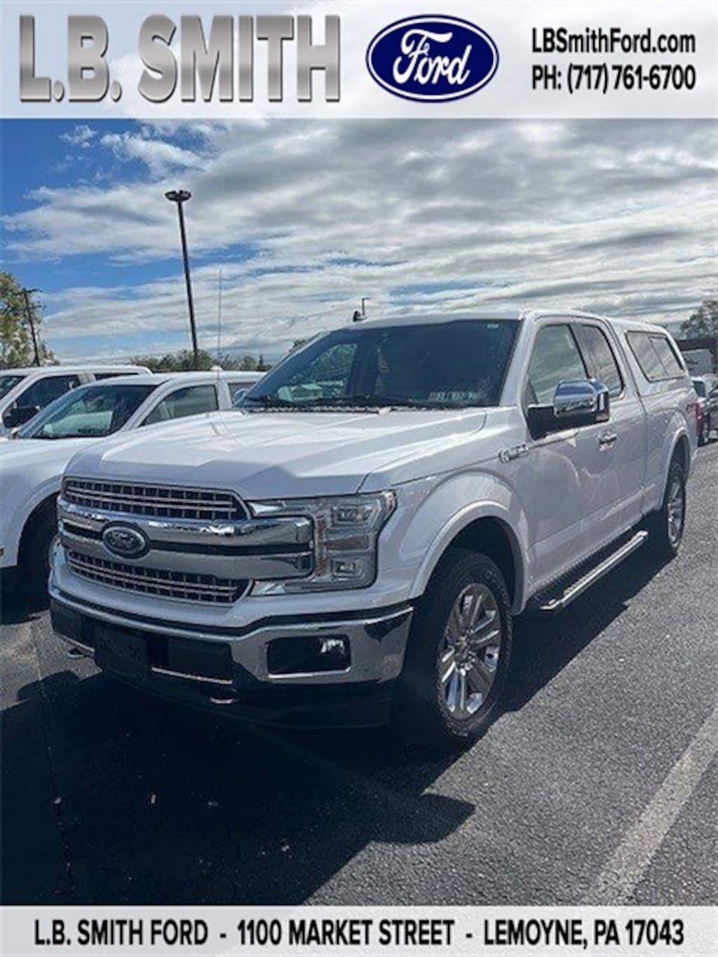 Certified. White Platinum 2019 Ford F-150 Lariat 4WD 10-Speed Automatic 3.5L V6 EcoBoost 4WD, 110V/400W Outlet, 4-Wheel Disc Brakes, ABS brakes, Adjustable pedals, Air Conditioning, AM/FM radio: SiriusXM, AppLink/Apple CarPlay and Android Auto, Auto High-beam Headlights, Auto-dimming door mirrors, Auto-dimming Rear-View mirror, Automatic temperature control, BLIS Blind Spot Information System, Brake assist, Bumpers: chrome, Chrome 2-Bar Grille w/4 Minor Bars, Chrome Angular Step Bars, Chrome Door & Tailgate Handles w/Body-Color Bezel, Chrome Skull Caps on Exterior Mirrors, Class IV Trailer Hitch Receiver, Compass, Delay-off headlights, Driver door bin, Driver vanity mirror, Dual front impact airbags, Dual front side impact airbags, Electronic Locking w/3.55 Axle Ratio, Electronic Stability Control, Emergency communication system: SYNC 3 911 Assist, Engine Oil Cooler, Equipment Group 502A Luxury, Extended Range 36 Gallon Fuel Tank, Exterior Parking Camera Rear, Front anti-roll bar, Front Center Armrest w/Storage, Front dual zone A/C, Front fog lights, Front License Plate Bracket, Front reading lights, Front wheel independent suspension, Fully automatic headlights, GVWR: 7,050 lbs Payload Package, Heated door mirrors, Heated front seats, Heated Steering Wheel, Illuminated entry, Integrated Trailer Brake Controller, Lariat Chrome Appearance Package, Leather-Trimmed 40/20/40 Front Seat, Leather-Trimmed Bucket Seats, LED Sideview Mirror Spotlights, Low tire pressure warning, Max Trailer Tow Package, Memory seat, Occupant sensing airbag, Outside temperature display, Overhead airbag, Overhead console, Panic alarm, Passenger door bin, Passenger vanity mirror, Pedal memory, Power door mirrors, Power driver seat, Power Glass Sideview Mirr w/Chrome Skull Caps, Power passenger seat, Power steering, Power Tilt/Telescoping Steering Column w/Memory, Power windows, Pro Trailer Backup Assist, Quad Beam LED Headlamps & LED Taillamps/Fog Lamps, Radio: B&O Sound System by Bang & Olufsen, Rain-Sensing Wipers, Rear step bumper, Rear window defroster, Remote keyless entry, Remote Start System w/Remote Tailgate Release, Reverse Sensing System, Security system, Single-Tip Chrome Exhaust, SiriusXM Radio, Speed control, Speed-sensing steering, Split folding rear seat, Steering wheel mounted audio controls, SYNC 3, Tachometer, Tailgate Step w/Tailgate Lift Assist, Telescoping steering wheel, Tilt steering wheel, Traction control, Trip computer, Turn signal indicator mirrors, Universal Garage Door Opener, Upgraded Front Stabilizer Bar, Variably intermittent wipers, Ventilated front seats, Voice-Activated Touchscreen Navigation, Voltmeter, Wheels: 18" Chrome-Like PVD, Windshield Wiper De-Icer.