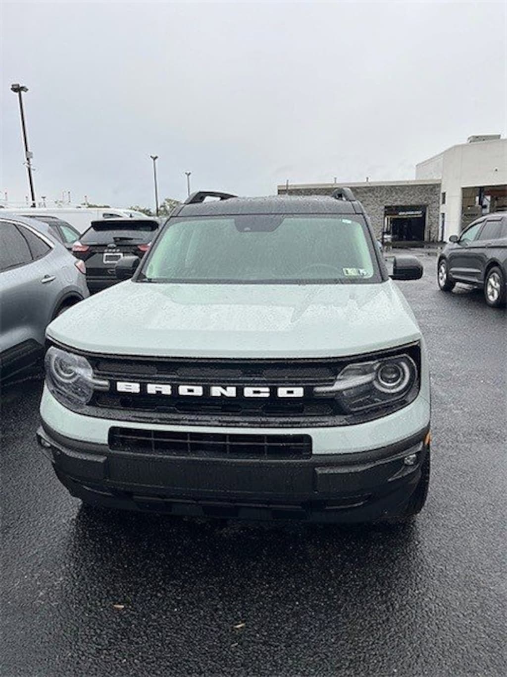 Certified. Cactus Gray 2023 Ford Bronco Sport Outer Banks 4WD 8-Speed Automatic 1.5L EcoBoost 3.80 Axle Ratio, 4-Wheel Disc Brakes, 4G LTE Wi-Fi Hotspot Credit, 6 Speakers, ABS brakes, Air Conditioning, AM/FM radio: SiriusXM, Auto High-beam Headlights, Auto-dimming Rear-View mirror, Automatic temperature control, Brake assist, Cargo Management System, Compass, Delay-off headlights, Driver door bin, Driver vanity mirror, Dual front impact airbags, Dual front side impact airbags, Electronic Stability Control, Emergency communication system: SYNC 3 911 Assist, Equipment Group 300A, Four wheel independent suspension, Front anti-roll bar, Front Bucket Seats, Front Center Armrest, Front dual zone A/C, Front fog lights, Front reading lights, Fully automatic headlights, HD Radio, Heated door mirrors, Heated front seats, Heated steering wheel, Illuminated entry, Knee airbag, Leather Trimmed Heated Sport Contour Bucket Seats, Low tire pressure warning, Memory seat, Occupant sensing airbag, Outside temperature display, Overhead airbag, Overhead console, Painted Shadow Black Roof, Panic alarm, Passenger door bin, Passenger vanity mirror, Power door mirrors, Power driver seat, Power passenger seat, Power steering, Power windows, Rain sensing wipers, Rear anti-roll bar, Rear Parking Sensors, Rear reading lights, Rear seat center armrest, Rear window defroster, Rear window wiper, Remote keyless entry, Security system, SiriusXM, Speed control, Speed-sensing steering, Speed-Sensitive Wipers, Split folding rear seat, Steering wheel mounted audio controls, SYNC 3 Communications & Entertainment System, SYNC 3/Apple CarPlay/Android Auto, Tachometer, Tech Package, Telescoping steering wheel, Tilt steering wheel, Traction control, Trip computer, Universal Garage Door Opener (UGDO), Variably intermittent wipers, Wheels: 18" Ebony Black-Painted Aluminum, Wireless Charging Pad.