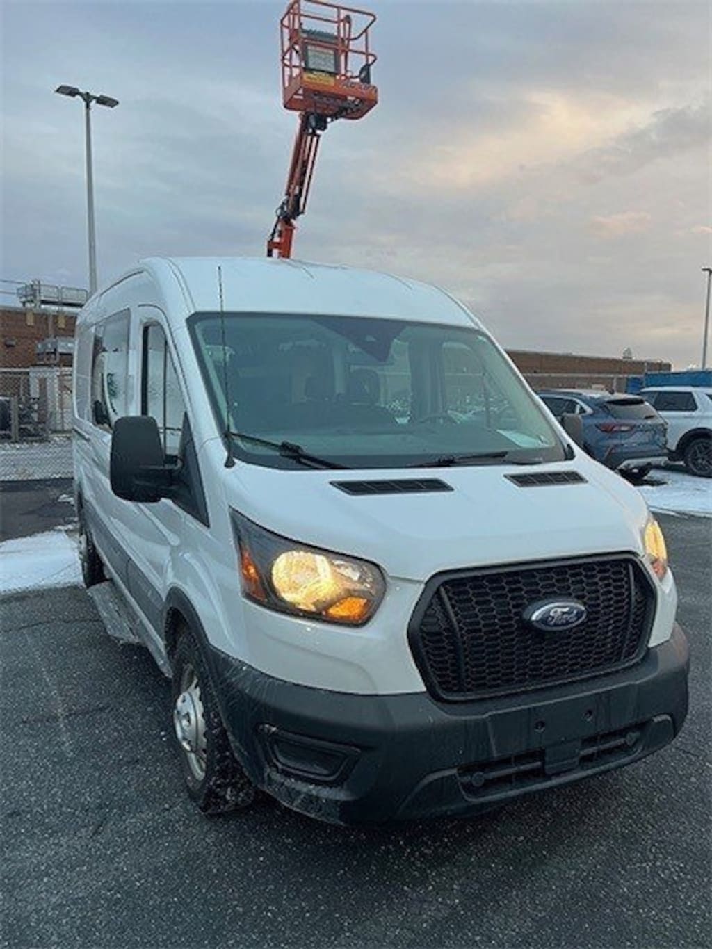 Certified. White 2023 Ford Transit-250 RWD 10-Speed Automatic with Overdrive EcoBoost 3.5L V6 GTDi DOHC 24V Twin Turbocharged 3.73 Axle Ratio, 4 Speakers, 4-Wheel Disc Brakes, ABS brakes, Air Conditioning, AM/FM Stereo, Auto High-beam Headlights, Auxiliary Fuse Panel, Brake assist, Dark Palazzo Gray Vinyl Bucket Seats, Delay-off headlights, Driver door bin, Driver vanity mirror, Driver's Seat Mounted Armrest, Dual AGM Batteries (70 Amp-hr Each), Dual front impact airbags, Dual front side impact airbags, Ebony Cloth Bucket Seats w/Armrests, Electronic Stability Control, Exterior Parking Camera Rear, Front anti-roll bar, Front Bucket Seats, Front reading lights, Front wheel independent suspension, Fully automatic headlights, Illuminated entry, Large Center Console, Low tire pressure warning, Modified Vehicle Wiring System, Occupant sensing airbag, Order Code 201A, Overhead airbag, Panic alarm, Passenger cancellable airbag, Passenger door bin, Passenger vanity mirror, Power door mirrors, Power steering, Power windows, Radio Prep Package, Rear window defroster, Remote keyless entry, Steering wheel mounted audio controls, Tachometer, Telescoping steering wheel, Tilt steering wheel, Traction control, Upfitter Package, Variably intermittent wipers, Wheels: 16" Silver Steel w/Black Hubcap.
