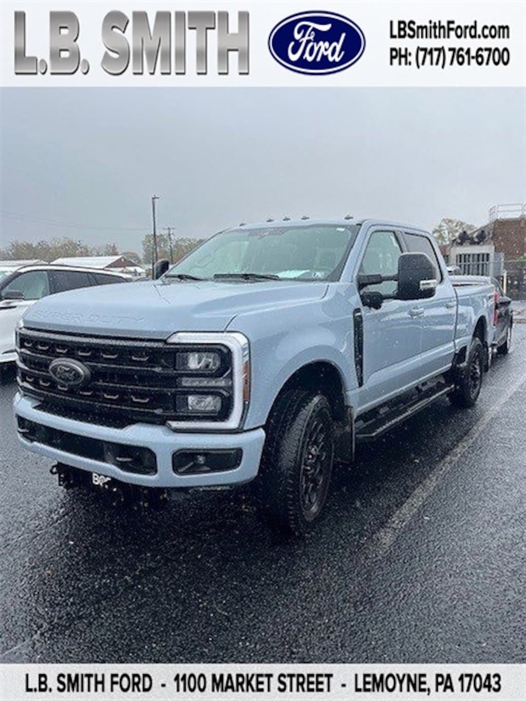 Certified. Gray Metallic 2024 Ford F-250SD Lariat 4WD 10-Speed Automatic 7.3L V8 PFI OHV 16V Federal 430hp 4WD, 4-Wheel Disc Brakes, 6" Ebony Black Angular Running Boards, 8 Speakers, ABS brakes, Adjustable pedals, Air Conditioning, AM/FM radio: SiriusXM with 360L, Auto High-beam Headlights, Auto tilt-away steering wheel, Auto-dimming Rear-View mirror, Automatic temperature control, Black Appearance Package, Body Color Front & Rear Bumpers, Brake assist, Bumpers: chrome, Compass, Delay-off headlights, Driver door bin, Driver vanity mirror, Dual front impact airbags, Dual front side impact airbags, Ebony Black Painted Front Grille Bars, Ebony Black Painted Mirror Caps, Electronic Stability Control, Electronic-Locking w/3.73 Axle Ratio, Emergency communication system: SYNC 4 911 Assist, Exterior Parking Camera Rear, F-250 >10K GVWR Package, Flow-Through Console, Front anti-roll bar, Front Bucket Seats, Front Center Armrest, Front dual zone A/C, Front fog lights, Front Leather-Trimmed 40/Console/40 Seats, Front License Plate Bracket, Front reading lights, Front Splash Guards/Mud Flaps (Pre-Installed), Fully automatic headlights, FX4 Off-Road Package, Garage door transmitter, Heated door mirrors, Heated front seats, Heated rear seats, Heated steering wheel, Hill Descent Control, Illuminated entry, Leather steering wheel, LED Roof Clearance Lights, Low tire pressure warning, Memory seat, Navigation System, Off-Road Specifically Tuned Shock Absorbers, Order Code 608A, Outside temperature display, Overhead airbag, Overhead console, Panic alarm, Passenger door bin, Passenger vanity mirror, Pedal memory, Power door mirrors, Power driver seat, Power passenger seat, Power steering, Power windows, Radio: B&O Sound System by Bang & Olufsen, Rain sensing wipers, Rear reading lights, Rear seat center armrest, Rear Splash Guards/Mud Flaps (Pre-Installed), Rear step bumper, Rear Wheel Well Liners (Pre-Installed), Rear window defroster, Remote keyless entry, Security system, SiriusXM Radio w/360L, Speed control, Split folding rear seat, Steering wheel memory, Steering wheel mounted audio controls, SYNC 4 w/Enhanced Voice Recognition, Tachometer, Tailgate Step & Handle, Telescoping steering wheel, Tilt steering wheel, Tough Bed Spray-In Bedliner, Traction control, Trip computer, Turn signal indicator mirrors, Unique FX4 Off-Road Box Decal, Variably intermittent wipers, Ventilated front seats, Wheels: 20" Machined & Ebony Black High Gloss.