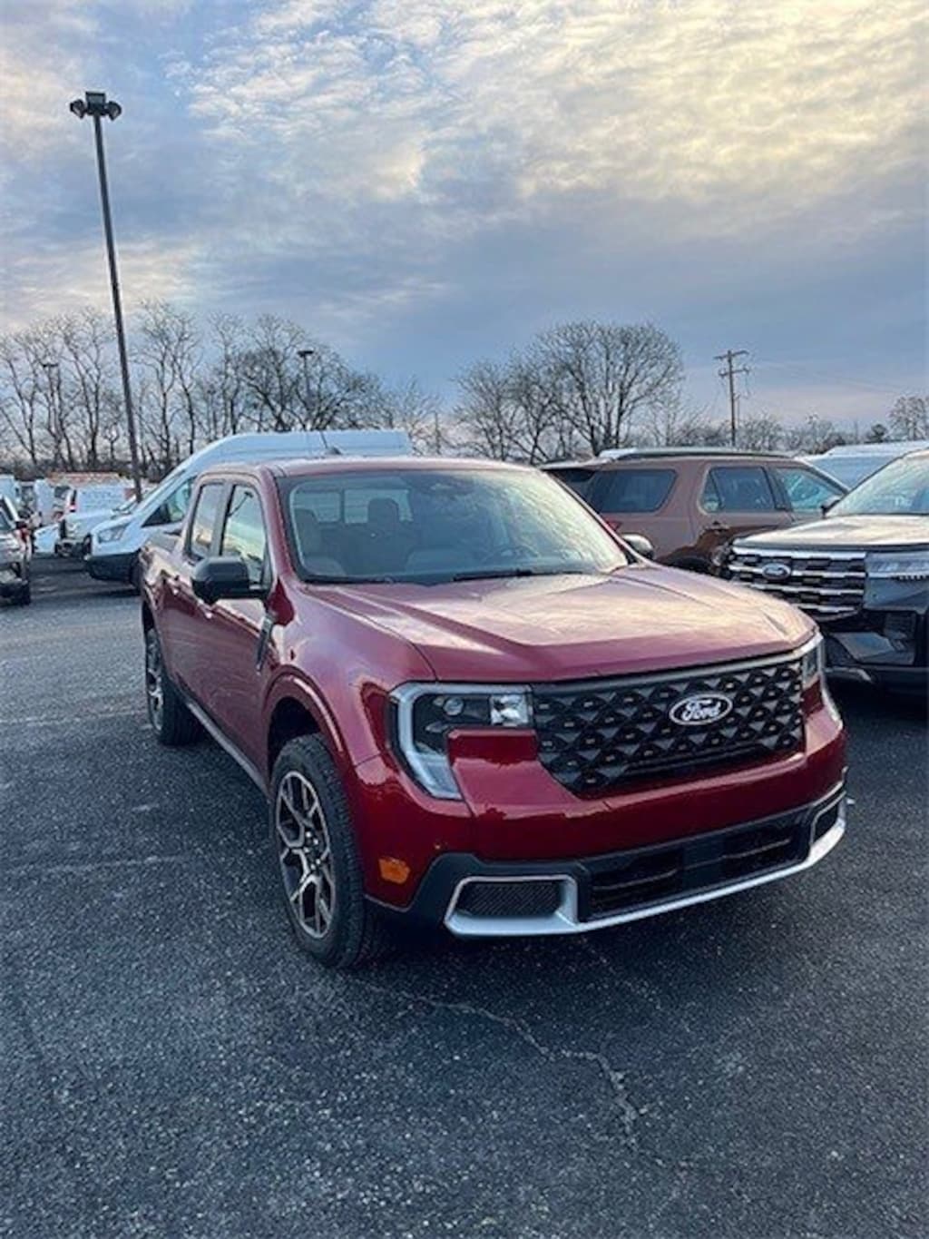Chili Pepper Red 2024 Ford Maverick XLT FWD CVT 2.5L I-4 Hybrid 2.5L I-4 Hybrid, 3.63 Axle Ratio, 4-Wheel Disc Brakes, 400W Inverter w/USB Console Rear, 6 Speakers, ABS brakes, Air Conditioning, AM/FM radio, Auto High-beam Headlights, Automatic temperature control, Bed Tie Down Locking Rails w/2 Locking Brackets, BLIS Blind Spot Info System w/Cross-Traffic Alert, Brake assist, Bumpers: body-color, Compass, Delay-off headlights, Driver door bin, Driver vanity mirror, Dual front impact airbags, Dual front side impact airbags, Electronic Stability Control, Equipment Group 300A Standard, Exterior Parking Camera Rear, Ford Co-Pilot360, Front anti-roll bar, Front Bucket Seats, Front Center Armrest, Front reading lights, Front wheel independent suspension, Fully automatic headlights, Heated Mirror w/Painted Black Skull Caps, Heated Seats, Illuminated entry, Knee airbag, Lane-Keeping System, LED Box Lighting, Low tire pressure warning, Modular Hard Drop-In Bedliner, Occupant sensing airbag, Outside temperature display, Overhead airbag, Overhead console, Panic alarm, Passenger door bin, Passenger vanity mirror, Power door mirrors, Power steering, Power windows, Radio: AM/FM Stereo w/6 Speakers, Rear anti-roll bar, Rear seat center armrest, Rear step bumper, Remote keyless entry, Remote Start System, Security system, Soft Vinyl Wrapped Heated Steering Wheel, Speed control, Speed-sensing steering, Steering wheel mounted audio controls, Tachometer, Telescoping steering wheel, Tilt steering wheel, Traction control, Trailer Hitch Receiver w/4-Pin Connector, Trip computer, Unique Cloth Front Bucket Seats, Wheels: 17" Carbonized Gray Painted Aluminum, XLT Luxury Package.