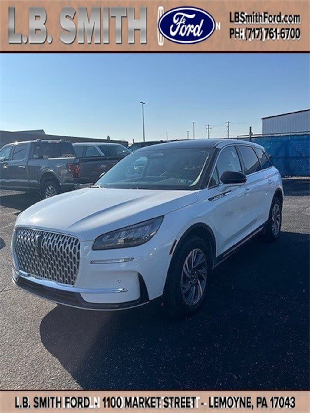 Pristine White Metallic Tri-Coat 2023 Lincoln Corsair Standard AWD 8-Speed Automatic 2.0L Turbocharged 10 Speakers, 18" Bright Machined Aluminum Wheels, 3.81 Axle Ratio, 4-Wheel Disc Brakes, 60/40 EasyFold Rear Seat w/Power Seatback Release, ABS brakes, Air Conditioning, AM/FM radio: SiriusXM, Auto High-beam Headlights, Auto-dimming Rear-View mirror, Automatic temperature control, Brake assist, Bumpers: body-color, Compass, Delay-off headlights, Driver door bin, Driver vanity mirror, Dual front impact airbags, Dual front side impact airbags, Electronic Stability Control, Emergency communication system: SYNC 4 911 Assist, Equipment Group 101A, Four wheel independent suspension, Frameless Auto Dimming Rearview Mirror, Front anti-roll bar, Front Bucket Seats, Front Center Armrest, Front dual zone A/C, Front reading lights, Fully automatic headlights, Hands-Free Liftgate, Heated door mirrors, Heated front seats, Heated Sideview Mirrors, Heated Steering Wheel, Heated/Ventilated Driver & Front Passenger Seats, Illuminated entry, Knee airbag, Leather steering wheel, Lincoln Soft Touch Heated Comfort Seats, Low tire pressure warning, Memory seat, Micro-Perforated Lincoln Soft Touch Seats, Navigation System, Occupant sensing airbag, Outside temperature display, Overhead airbag, Overhead console, Panic alarm, Panoramic Vista Roof w/Power Shade, Passenger door bin, Passenger vanity mirror, Phone As A Key (PAAK), Power door mirrors, Power driver seat, Power Liftgate, Power passenger seat, Power steering, Power Tilt/Telescoping Steering Column w/Memory, Power windows, Radio: Lincoln Premium Audio System w/MP3, Rain Sensing Wipers, Rear anti-roll bar, Rear Parking Sensors, Rear reading lights, Rear seat center armrest, Rear window defroster, Rear window wiper, Remote keyless entry, Security system, SiriusXM Radio, Speed control, Speed-sensing steering, Speed-Sensitive Wipers, Split folding rear seat, Spoiler, Steering wheel mounted A/C controls, Steering wheel mounted audio controls, SYNC 4 Communications & Entertainment System, Tachometer, Telescoping steering wheel, Tilt steering wheel, Traction control, Trip computer, Universal Garage Door Opener, Variably intermittent wipers, Windshield Wiper De-Icer, Wireless Charging Pad.
