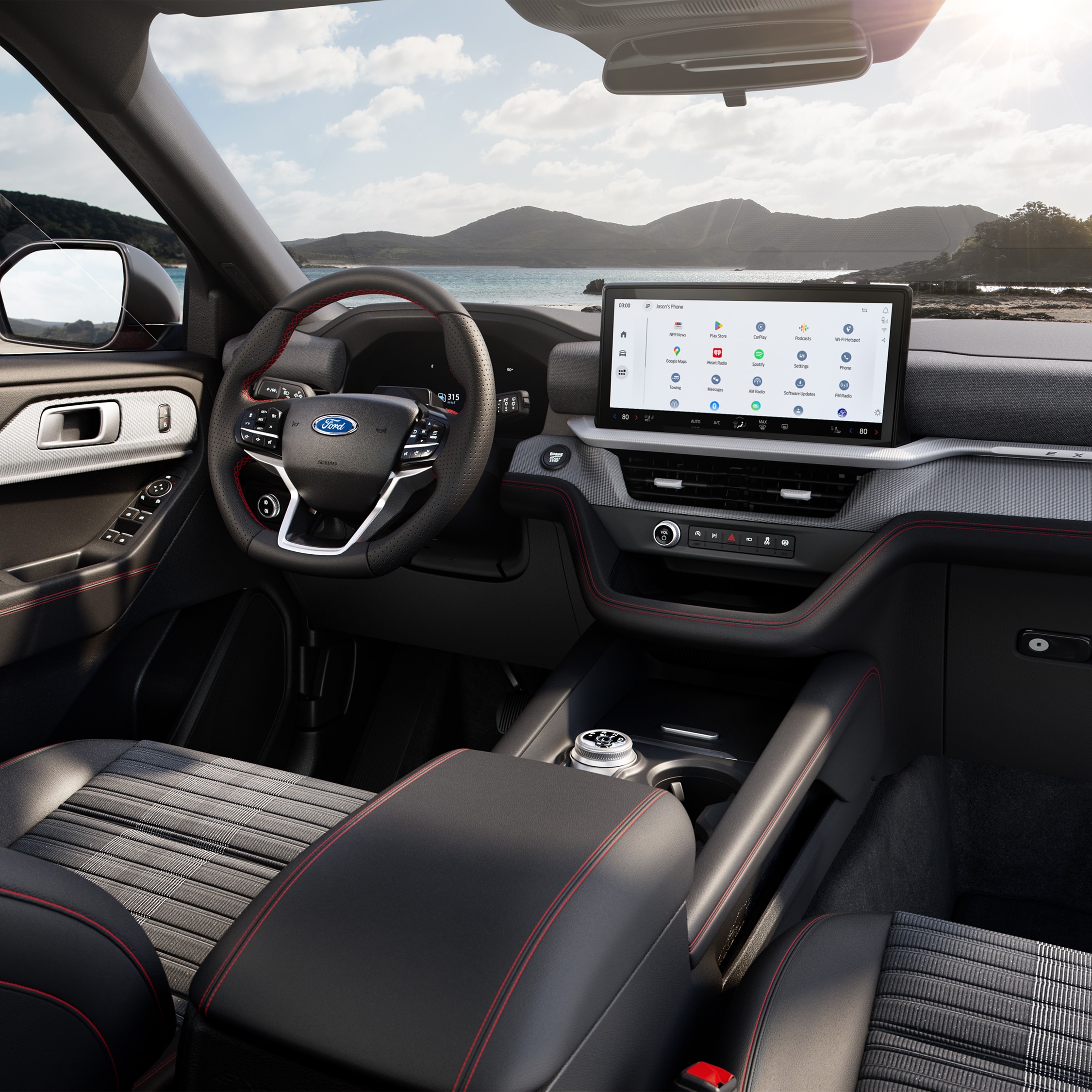 If you crave a family hauler with extra pep in its step, look no further than the Explorer ST. Its specially-tuned sport suspension, quicker steering, and standard all-wheel drive team up with the powerful 400-horsepower EcoBoost V6 for a large crossover that's genuinely fun to drive on twisty backroads. The ST also looks the part with its blacked-out grille, special badging, and 20-inch wheels. Heavily bolstered front seats with micro-perforated leather and red accent stitching complete the performance-focused vibe inside. Other Explorer trims include the Active, ST-Line below the ST and the luxurious Platinum above it.