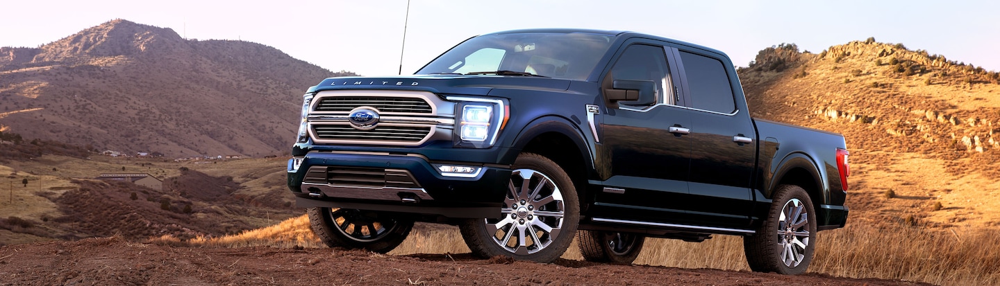 The F-150 Platinum offers you a choice of a 5.0-liter V8 engine or an optional hybrid powertrain with a turbo V6. Massaging front seats come standard and a Bang & Olufsen 18-speaker stereo is available. The Ford F-150 Limited has a high-output turbocharged 3.5-liter V6 with 450 horsepower as well as B.F. Goodrich all-terrain tires. The F-150 Tremor offers a choice of a 5.0-liter V8 or a turbo 3.5 liter V6 along with off-road suspension. Finally, the Ford F-150 Raptor comes with a Hi-Lock transfer case and Fox Racing Shox.