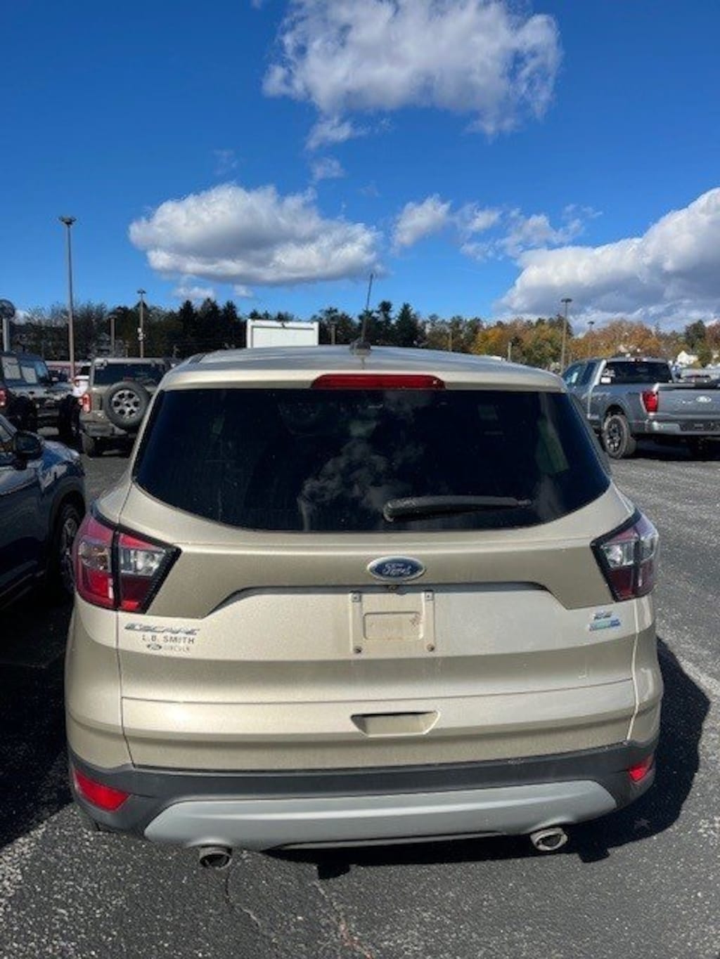 Beige / Tan 2017 Ford Escape SE 4WD 6-Speed Automatic 1.5L EcoBoost 4WD, 3.51 Axle Ratio, 4-Wheel Disc Brakes, 6 Speakers, ABS brakes, Air Conditioning, AM/FM radio: SiriusXM, Automatic temperature control, Brake assist, Bumpers: body-color, Compass, Delay-off headlights, Driver door bin, Driver vanity mirror, Dual front impact airbags, Dual front side impact airbags, Electronic Stability Control, Emergency communication system: 911 Assist, Equipment Group 200A, Exterior Parking Camera Rear, Four wheel independent suspension, Front anti-roll bar, Front Bucket Seats, Front Center Armrest, Front dual zone A/C, Front fog lights, Front reading lights, Fully automatic headlights, Illuminated entry, Knee airbag, Low tire pressure warning, Occupant sensing airbag, Outside temperature display, Overhead airbag, Overhead console, Panic alarm, Passenger door bin, Passenger vanity mirror, Power door mirrors, Power driver seat, Power steering, Power windows, Rear anti-roll bar, Rear seat center armrest, Rear window defroster, Rear window wiper, Remote keyless entry, Speed control, Speed-sensing steering, Split folding rear seat, Steering wheel mounted audio controls, SYNC Communications & Entertainment System, Tachometer, Telescoping steering wheel, Tilt steering wheel, Traction control, Trip computer, Unique Cloth Buckets w/60/40 Split Rear Seat, Variably intermittent wipers, Wheels: 17" Sparkle Silver Painted Aluminum.