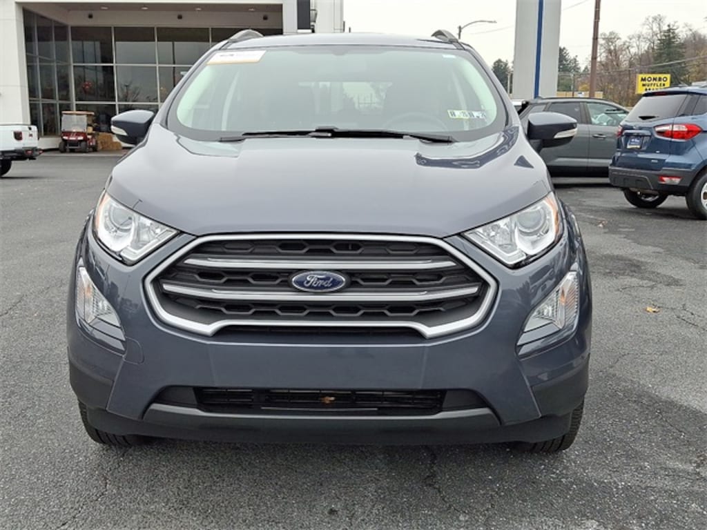 Smoke Metallic 2022 Ford EcoSport SE 4WD 6-Speed Automatic 2.0L I4 Ti-VCT GDI 3.51 Axle Ratio, 4-Wheel Disc Brakes, 6 Speakers, ABS brakes, Air Conditioning, AM/FM radio: SiriusXM, AppLink/Apple CarPlay and Android Auto, Automatic temperature control, Brake assist, Bumpers: body-color, Compass, Delay-off headlights, Driver door bin, Driver vanity mirror, Dual front impact airbags, Dual front side impact airbags, Electronic Stability Control, Emergency communication system: SYNC 3 911 Assist, Equipment Group 200A, Exterior Parking Camera Rear, Front anti-roll bar, Front Bucket Seats, Front Center Armrest, Front fog lights, Front reading lights, Front wheel independent suspension, Fully automatic headlights, Heated front seats, Illuminated entry, Knee airbag, Leather Shift Knob, Low tire pressure warning, Occupant sensing airbag, Outside temperature display, Overhead airbag, Overhead console, Panic alarm, Passenger door bin, Passenger vanity mirror, Power door mirrors, Power moonroof, Power steering, Power windows, Rear anti-roll bar, Rear Parking Sensors, Rear seat center armrest, Rear side impact airbag, Rear window defroster, Rear window wiper, Remote keyless entry, Roof rack: rails only, SiriusXM Radio, Speed control, Speed-sensing steering, Split folding rear seat, Steering wheel mounted audio controls, SYNC 3 Communications & Entertainment System, Tachometer, Telescoping steering wheel, Tilt steering wheel, Traction control, Trip computer, Turn signal indicator mirrors, Unique Cloth Heated Front Bucket Seats, Variably intermittent wipers, Wheels: 16" Shadow Silver-Painted Aluminum.