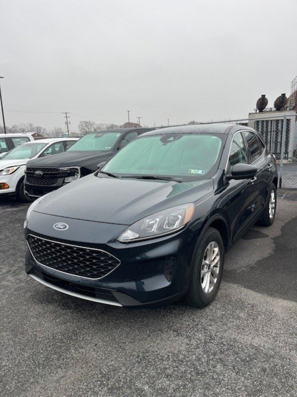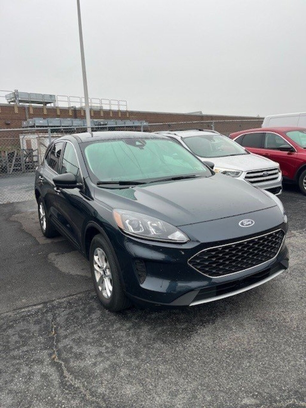 Stone Blue Metallic 2022 Ford Escape SE AWD 8-Speed Automatic 1.5L EcoBoost AWD, 3.81 Axle Ratio, 4-Wheel Disc Brakes, 4G LTE Wi-Fi Hotspot Removal, 6 Speakers, 8-Way Power Driver Seat, ABS brakes, Air Conditioning, AM/FM radio: SiriusXM, Auto High-beam Headlights, Brake assist, Bumpers: body-color, Cold Weather Package, Compass, Convenience Package, Delay-off headlights, Driver door bin, Driver vanity mirror, Dual front impact airbags, Dual front side impact airbags, Dual-Zone Electronic Automatic Temperature Control, Electronic Automatic Temperature Control (EATC), Electronic Stability Control, Emergency communication system: SYNC 3 911 Assist, Equipment Group 200A, Exterior Parking Camera Rear, Fold-Down Rear Center Armrest w/2 Cupholders, Ford Co-Pilot360 Assist+, FordPass Connect, Four wheel independent suspension, Front anti-roll bar, Front Bucket Seats, Front Center Armrest, Front reading lights, Fully automatic headlights, Halogen Projector Headlamps w/LED Signature, Heated & Premium Wrapped Steering Wheel, Heated Front Row Seats, Heated Sideview Mirrors, Illuminated entry, Intelligent Adaptive Cruise Control w/Stop-and-Go, Knee airbag, Low tire pressure warning, Navigation System, Occupant sensing airbag, Outside temperature display, Overhead airbag, Overhead console, Panic alarm, Passenger door bin, Passenger vanity mirror, Power door mirrors, Power Liftgate, Power steering, Power windows, Rear anti-roll bar, Rear reading lights, Rear window defroster, Rear window wiper, Remote keyless entry, Remote Start System w/86C, Speed control, Speed Sign Recognition, Speed-sensing steering, Speed-Sensitive Wipers, Split folding rear seat, Spoiler, Steering wheel mounted audio controls, SYNC 3 Communications & Entertainment System, Tachometer, Telescoping steering wheel, Tilt steering wheel, Traction control, Trip computer, Unique Cloth Front Bucket Seats, Variably intermittent wipers, Voice-Activated Touchscreen Navigation System, Wheels: 17" Shadow Silver-Painted Aluminum.