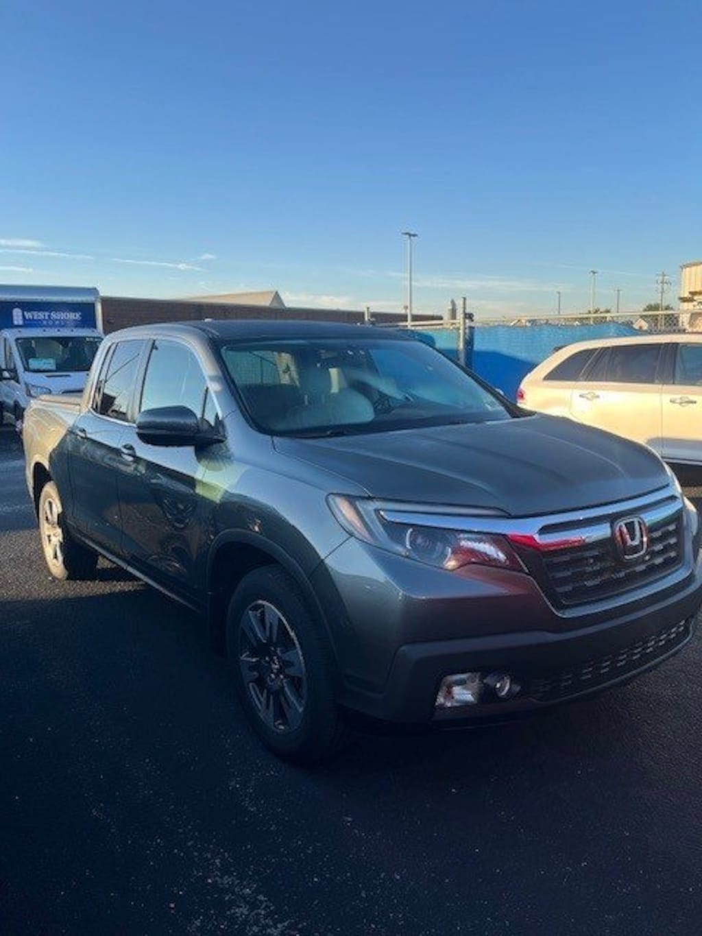 Modern Steel 2017 Honda Ridgeline RTL AWD 6-Speed Automatic 3.5L V6 SOHC i-VTEC 24V Leather, 18" Machine-Finished Alloy Wheels, 4-Wheel Disc Brakes, 4.25 Axle Ratio, 7 Speakers, ABS brakes, Air Conditioning, Automatic temperature control, Bluetooth® Hands-Free Link, Brake assist, Bumpers: body-color, Delay-off headlights, Driver door bin, Driver vanity mirror, Driver's Seat Mounted Armrest, Dual front impact airbags, Dual front side impact airbags, Electronic Stability Control, Emergency communication system: HondaLink, Exterior Parking Camera Rear, Four wheel independent suspension, Front anti-roll bar, Front Bucket Seats, Front dual zone A/C, Front fog lights, Front reading lights, Fully automatic headlights, Garage door transmitter: HomeLink, Heated door mirrors, Heated Front Bucket Seats, Heated front seats, Illuminated entry, Leather Seat Trim, Low tire pressure warning, Occupant sensing airbag, Outside temperature display, Overhead airbag, Overhead console, Panic alarm, Passenger door bin, Passenger seat mounted armrest, Passenger vanity mirror, Power door mirrors, Power driver seat, Power passenger seat, Power steering, Power windows, Radio: AM/FM/MP3, Rear air conditioning, Rear anti-roll bar, Rear reading lights, Rear seat center armrest, Rear step bumper, Rear window defroster, Remote keyless entry, Security system, Speed control, Speed-sensing steering, Split folding rear seat, Steering wheel mounted audio controls, Tachometer, Telescoping steering wheel, Tilt steering wheel, Traction control, Trip computer, Turn signal indicator mirrors, Variably intermittent wipers.