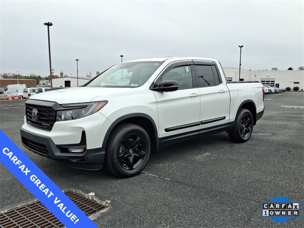 White 2022 Honda Ridgeline Black Edition AWD 9-Speed Automatic 3.5L V6 SOHC i-VTEC 24V 4-Wheel Disc Brakes, 4.33 Axle Ratio, 8 Speakers, ABS brakes, Air Conditioning, AM/FM radio: SiriusXM, Apple CarPlay/Android Auto, Auto High-beam Headlights, Auto-dimming Rear-View mirror, Automatic temperature control, Bed Cargo Net, Black Lug Nuts, Blind Spot Information (BSI) System warning, Bluetooth® Hands-Free Link, Brake assist, Bumpers: body-color, Compass, Delay-off headlights, Driver door bin, Driver vanity mirror, Driver's Seat Mounted Armrest, Dual front impact airbags, Dual front side impact airbags, Electronic Stability Control, Exterior Parking Camera Rear, Fender Flares (PPO), First Aid Kit (PPO), Forward collision: Collision Mitigation Braking System (CMBS) + FCW mitigation, Four wheel independent suspension, Front anti-roll bar, Front Bucket Seats, Front dual zone A/C, Front fog lights, Front reading lights, Fully automatic headlights, Function+ Package, Garage door transmitter: HomeLink, Grille, Hard Tonneau Cover, Heated door mirrors, Heated Front Bucket Seats, Heated front seats, Heated steering wheel, Honda Satellite-Linked Navigation System, HPD Black Package, HPD Decals & Emblem, Illuminated entry, Low tire pressure warning, Memory seat, Occupant sensing airbag, Outside temperature display, Overhead airbag, Overhead console, Panic alarm, Passenger door bin, Passenger seat mounted armrest, Passenger vanity mirror, Perforated Leather Seat Trim, Power door mirrors, Power driver seat, Power moonroof, Power passenger seat, Power steering, Power windows, Radio: 540-Watt Premium Audio System w/8 Speakers, Rear air conditioning, Rear anti-roll bar, Rear reading lights, Rear seat center armrest, Rear step bumper, Rear window defroster, Remote keyless entry, Security system, SiriusXM, Speed control, Speed-sensing steering, Split folding rear seat, Steering wheel mounted audio controls, Tachometer, Telescoping steering wheel, Tilt steering wheel, Traction control, Trip computer, Trunk Cargo Dividers, Trunk Cargo Net, Turn signal indicator mirrors, Variably intermittent wipers, Wheels: 18" HPD Alloy Wheels (PPO).