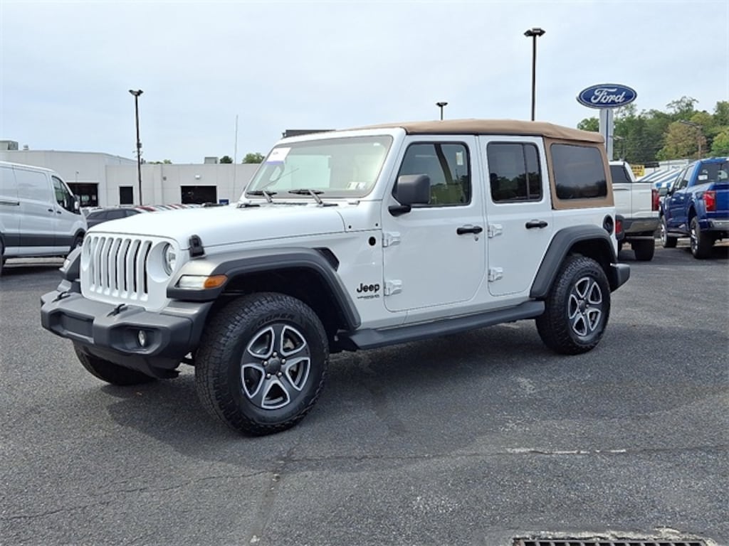 Bright White Clearcoat 2020 Jeep Wrangler 4WD 8-Speed Automatic 2.0L I4 DOHC 3.45 Rear Axle Ratio, 4-Wheel Disc Brakes, 7.0" Touchscreen Display, ABS brakes, Air Conditioning, Air Conditioning w/Auto Temperature Control, Air Filtering, Apple CarPlay, Automatic Headlamps, Aux Battery, Black & Tan Package, Black Trail Rated Badge, Brake assist, Bridgestone Brand Tires, Cloth Low-Back Bucket Seats, Cluster 7.0" TFT Color Display, Cold Weather Group, Compass, Convenience Group, Deep Tint Sunscreen Windows, Delay-off headlights, Driver door bin, Driver vanity mirror, Dual front impact airbags, Dual front side impact airbags, Electronic Stability Control, Front 1-Touch Down Power Windows, Front anti-roll bar, Front Bucket Seats, Front Center Armrest w/Storage, Front fog lights, Front reading lights, Google Android Auto, GPS Antenna Input, Heated Front Seats, Heated Steering Wheel, Injection Molded Black Rear Bumper, Integrated Center Stack Radio, Integrated roll-over protection, Integrated Voice Command w/Bluetooth, Leather Wrapped Steering Wheel, Low tire pressure warning, Matte Black Jeep Badge, MOPAR All-Weather Floor Mats, MOPAR All-Weather Floor Mats (DISC), Non-Lock Fuel Cap w/o Discriminator, Normal Duty Suspension, Occupant sensing airbag, Outside temperature display, ParkView Rear Back-Up Camera, Passenger door bin, Passenger vanity mirror, Power Heated Mirrors, Power steering, Premium Tan Sunrider Soft Top, Quick Order Package 22D Black & Tan (DISC), Radio: Uconnect 4 w/7" Display, Rear anti-roll bar, Rear reading lights, Remote Keyless Entry, Security Alarm, Side Steps, SiriusXM Satellite Radio, Speed control, Speed Sensitive Power Locks, Split folding rear seat, Steering wheel mounted audio controls, Stop-Start Dual Battery System, Sun Visors w/Illuminated Vanity Mirrors, Tachometer, Technology Group, Telescoping steering wheel, Tilt steering wheel, Traction control, Trip computer, Universal Garage Door Opener, USB Host Flip, Variably intermittent wipers, Wheels: 17" x 7.5" Machined Granite Crystal, Wizard Black Instrument Panel Bezels, Wrangler Decal.