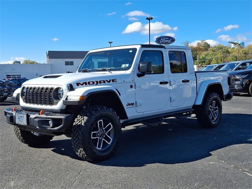 Bright White Clearcoat 2024 Jeep Gladiator Mojave 4WD 8-Speed Automatic 3.6L V6 24V VVT 12.3" Touchscreen Display, 4-Wheel Disc Brakes, 4.10 Rear Axle Ratio, 4G LTE Wi-Fi Hot Spot, 8 Speakers, 97 MPH Vehicle Max Speed Calibration, ABS brakes, Active Cruise Control, Air Conditioning, Alexa Built-In, Alpine Premium Audio System, AM/FM radio: SiriusXM with 360L, Apple CarPlay, Apple CarPlay/Android Auto, Auto High Beam Headlamp Control, Auto-Dimming Rear-View Mirror, Automatic temperature control, Blind Spot & Cross Path Detection, Bluetooth Wireless Speaker, Body Color 3-Piece Hard Top, Body Color Rubicon Highline Flare, Brake assist, Cargo Group w/Trail Rail System, Compass, Connected Travel & Traffic Services, Connectivity - US/Canada, Delay-off headlights, Driver door bin, Driver vanity mirror, Dual front impact airbags, Dual front side impact airbags, Electronic Stability Control, Emergency communication system: Jeep Connect, Emergency/Assistance Call, Exterior 115V AC Outlet, Freedom Panel Storage Bag, Front anti-roll bar, Front Bucket Seats, Front Center Armrest w/Storage, Front dual zone A/C, Front fog lights, Front reading lights, Full Length Floor Console Premium Armrest, Fully automatic headlights, Google Android Auto, GPS Antenna Input, GPS Navigation, HD Radio, Heated door mirrors, Heated Front Seats, Heated Steering Wheel, Heavy Duty Suspension w/Gas Shocks, Illuminated entry, Integrated Center Stack Radio, Integrated Off-Road Camera, Integrated roll-over protection, Integrated Voice Command w/Bluetooth, Leather steering wheel, Leather Trimmed Bucket Seats, Leather Wrapped Park Brake Handle, Leather Wrapped Shift Knob, Lockable Rear Underseat Storage, Low tire pressure warning, Mojave X Package, MOPAR All-Weather Slush Mats, MOPAR Hardtop Headliner, MOPAR Spray In Bedliner, Navigation System, No Soft Top, Occupant sensing airbag, Outside temperature display, Overhead airbag, Panic alarm, ParkSense Rear Park Assist System, Passenger door bin, Passenger vanity mirror, Power 4-Way Driver Lumbar Adjust, Power 4-Way Passenger Lumbar Adjust, Power Adjust 8-Way Driver Seat, Power Adjust 8-Way Front Passenger Seat, Power door mirrors, Power steering, Power windows, Premium Cloth Seats w/Sport Bolsters, Premium Door Trim Panel, Quick Order Package 24A Mojave X, Radio: Uconnect 5 Nav w/12.3" Display, Rear anti-roll bar, Rear Armrest w/Cupholder Seat, Rear reading lights, Rear Sliding Window, Rear Window Defroster, Remote keyless entry, Rock Protection Sill Rails, Roll-Up Tonneau Cover, Security system, SiriusXM Radio Service, SiriusXM w/360L, Speed control, Split folding rear seat, Steel Front Bumper, Steel Rear Bumper, Steering wheel mounted audio controls, Tachometer, Telescoping steering wheel, Tilt steering wheel, Traction control, Trail Rails, Trip computer, USB Host Flip, Variably intermittent wipers, Voltmeter, Wheels: 17" x 7.5" Dark Gray Painted.