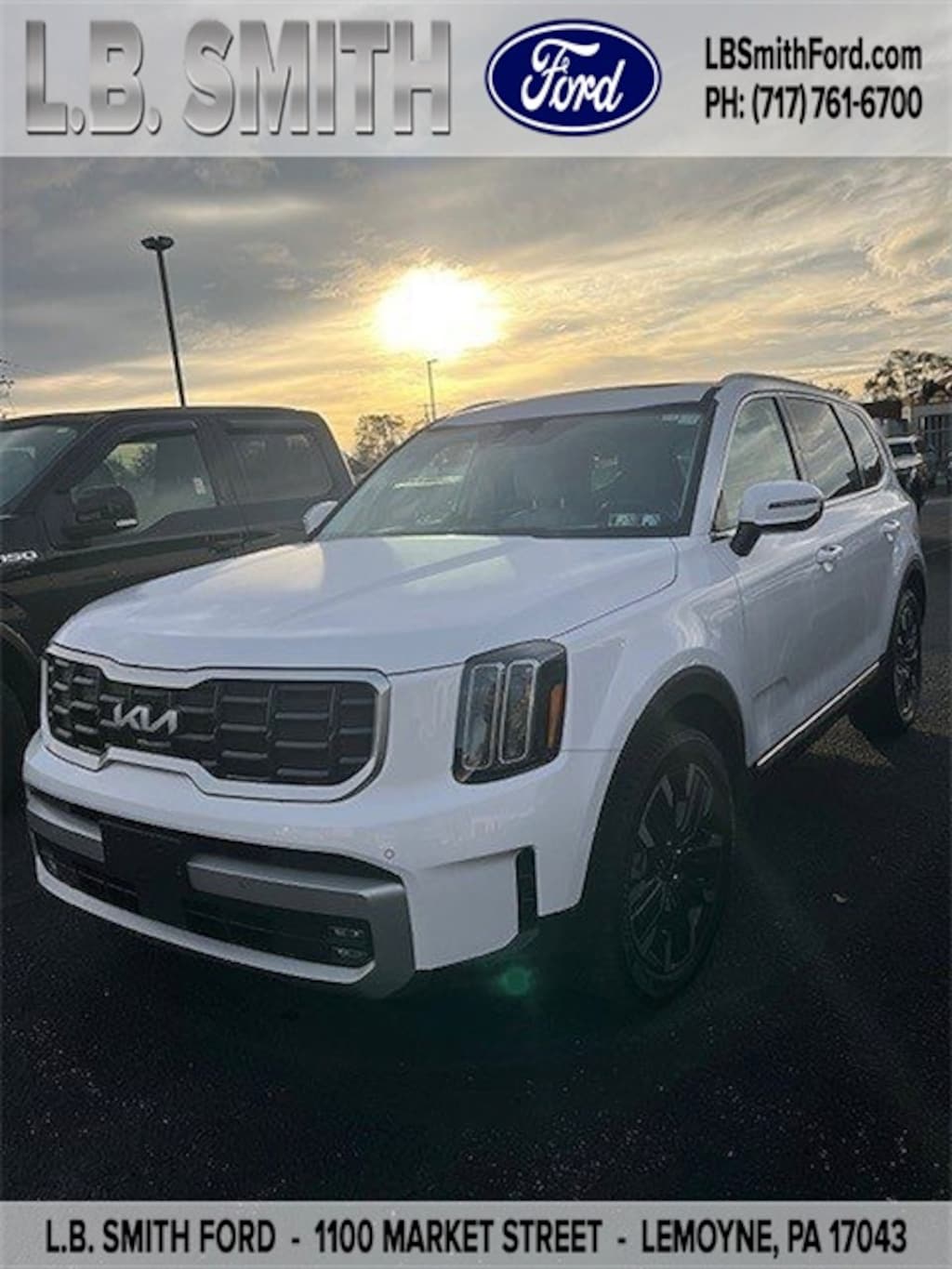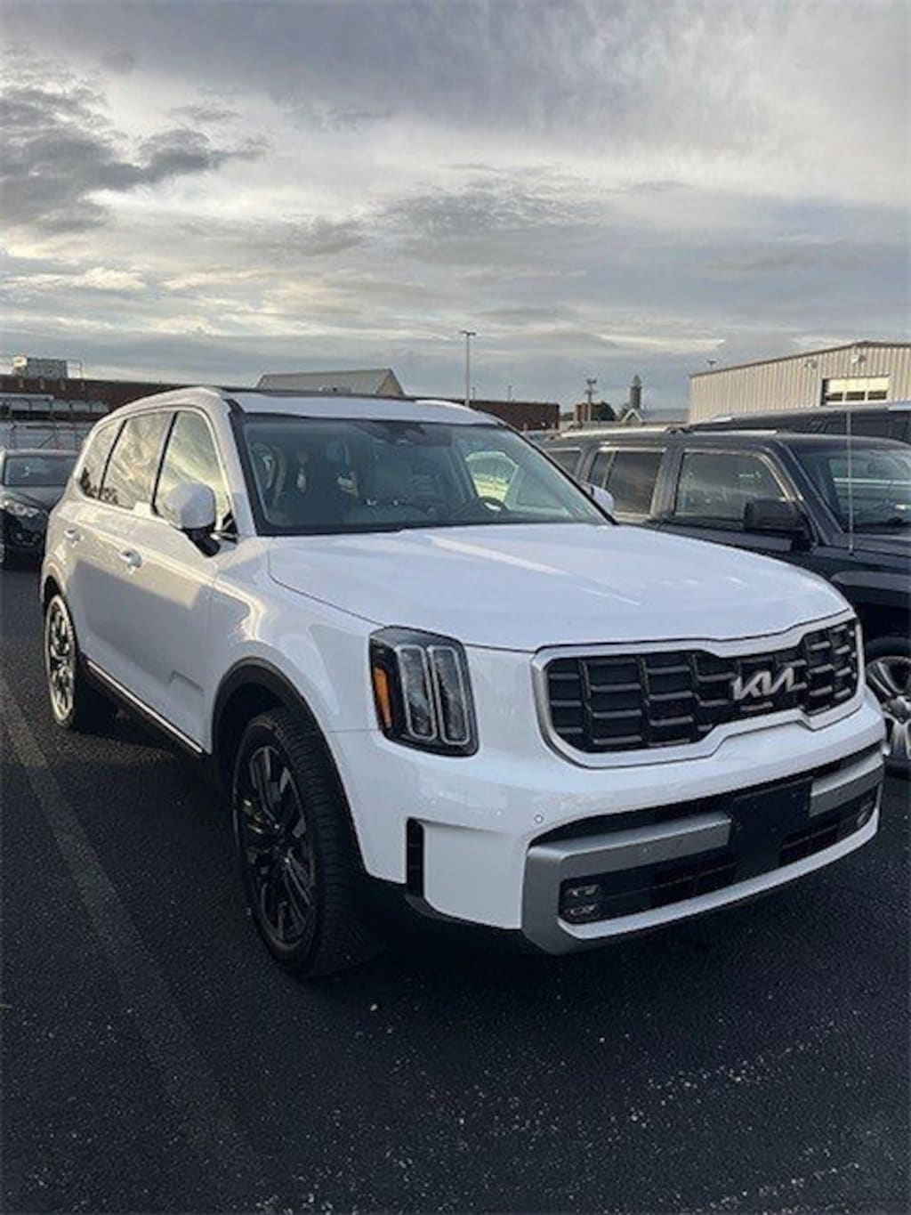 Priced below KBB Fair Purchase Price! Glacial White Pearl 2023 Kia Telluride SX-Prestige AWD 8-Speed Automatic 3.8L V6 DGI DOHC Dual CVVT 10 Speakers, 3.648 Axle Ratio, 3rd row seats: split-bench, 4-Wheel Disc Brakes, ABS brakes, Air Conditioning, AM/FM radio: SiriusXM, Apple CarPlay & Android Auto, Auto High-beam Headlights, Auto-dimming Rear-View mirror, Automatic temperature control, Brake assist, Bumpers: body-color, Cargo Cover, Carpet Floor Mats, Compass, Delay-off headlights, Driver door bin, Driver vanity mirror, Dual front impact airbags, Dual front side impact airbags, Electronic Stability Control, Emergency communication system: 911 Connect, Exterior Parking Camera Rear, Four wheel independent suspension, Front anti-roll bar, Front Bucket Seats, Front Center Armrest, Front dual zone A/C, Front fog lights, Front reading lights, Fully automatic headlights, Garage door transmitter: HomeLink, harman/kardon® Speakers, Heads-Up Display, Heated & Ventilated Front Bucket Seats, Heated door mirrors, Heated front seats, Heated rear seats, Heated steering wheel, Illuminated entry, Knee airbag, Leather Shift Knob, Leather steering wheel, Low tire pressure warning, Memory seat, Navigation System, Occupant sensing airbag, Outside temperature display, Overhead airbag, Overhead console, Panic alarm, Passenger door bin, Passenger vanity mirror, Power door mirrors, Power driver seat, Power Liftgate, Power moonroof, Power passenger seat, Power steering, Power windows, Premium Nappa Leather Seat Trim, Radio: AM/FM harman/kardon Audio System, Rain sensing wipers, Rear air conditioning, Rear anti-roll bar, Rear reading lights, Rear side impact airbag, Rear window defroster, Rear window wiper, Reclining 3rd row seat, Remote keyless entry, Roof rack: rails only, Security system, Smart Key w/ Push Button and Remote Start, Speed control, Speed-sensing steering, Split folding rear seat, Spoiler, Steering wheel mounted audio controls, Tachometer, Telescoping steering wheel, Tilt steering wheel, Traction control, Trip computer, Turn signal indicator mirrors, Variably intermittent wipers, Ventilated front seats, Ventilated rear seats, Wheels: 20" x 7.5" Black Finish.