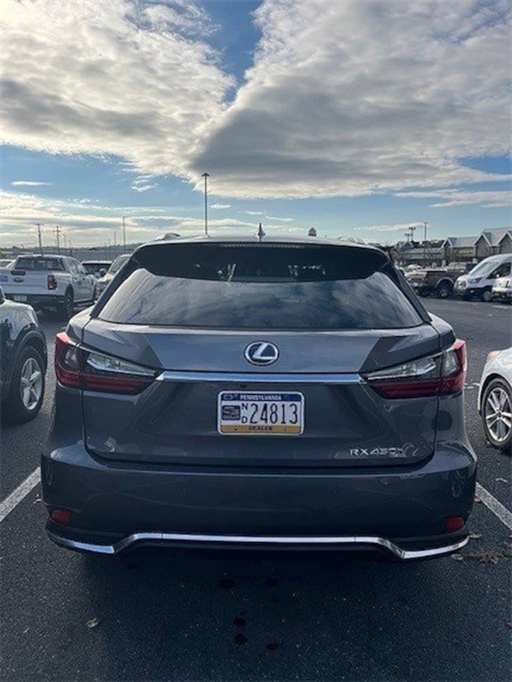 Priced below KBB Fair Purchase Price! Cloudburst Gray 2022 Lexus RX 450h AWD eCVT 3.5L V6 DOHC VVT-i 24V 3.5L V6 DOHC VVT-i 24V, AWD, 3.54 Axle Ratio, 4-Way Power Lumbar, 4-Wheel Disc Brakes, 9 Speakers, ABS brakes, Active Cruise Control, Air Conditioning, AM/FM radio: SiriusXM, Anti-whiplash front head restraints, Apple CarPlay/Android Auto, Auto High-beam Headlights, Auto-dimming door mirrors, Auto-dimming Rear-View mirror, Automatic temperature control, Brake assist, Bumpers: body-color, Cold Area Package (CK), Delay-off headlights, Driver door bin, Driver Seat & Steering Wheel Memory, Driver vanity mirror, Dual front impact airbags, Dual front side impact airbags, Electronic Stability Control, Emergency communication system, Exterior Parking Camera Rear, Four wheel independent suspension, Front anti-roll bar, Front Bucket Seats, Front Center Armrest, Front dual zone A/C, Front reading lights, Fully automatic headlights, Garage door transmitter: HomeLink, Genuine wood console insert, Genuine wood door panel insert, Gray Sapele Wood w/Aluminum Trim, Headlamp Auto-Leveling, Heated door mirrors, Heated Maple Steering Wheel, Heated Wood & Leather Steering Wheel w/Paddle, Heavy-Duty Heater, Illuminated Door Scuff Plates, Illuminated entry, Knee airbag, Leather Shift Knob, LED Ambient Illumination, Low tire pressure warning, Luxury Package, Manual Rear Door Sunshades, Navigation System, NuLuxe Seat Trim, Occupant sensing airbag, Outside temperature display, Overhead airbag, Overhead console, Panic alarm, Panoramic Moonroof & Aluminum Roof Rails, Passenger door bin, Passenger vanity mirror, Power door mirrors, Power driver seat, Power Liftgate, Power passenger seat, Power steering, Power windows, Radio: AM/FM/HD w/9-Speaker Premium Audio System, Rain sensing wipers, Rear anti-roll bar, Rear reading lights, Rear seat center armrest, Rear side impact airbag, Rear window defroster, Rear window wiper, Remote keyless entry, Security system, Semi-Aniline Leather Seat Trim, Speed control, Speed-sensing steering, Split folding rear seat, Spoiler, Stainless Steel Rear Bumper Protector, Steering wheel mounted audio controls, Telescoping steering wheel, Tilt steering wheel, Traction control, Trip computer, Turn signal indicator mirrors, Variably intermittent wipers, Wheels: 20" Super Chrome w/Machined Finish, Windshield-Wiper Deicer.