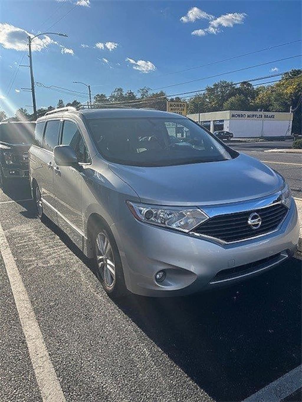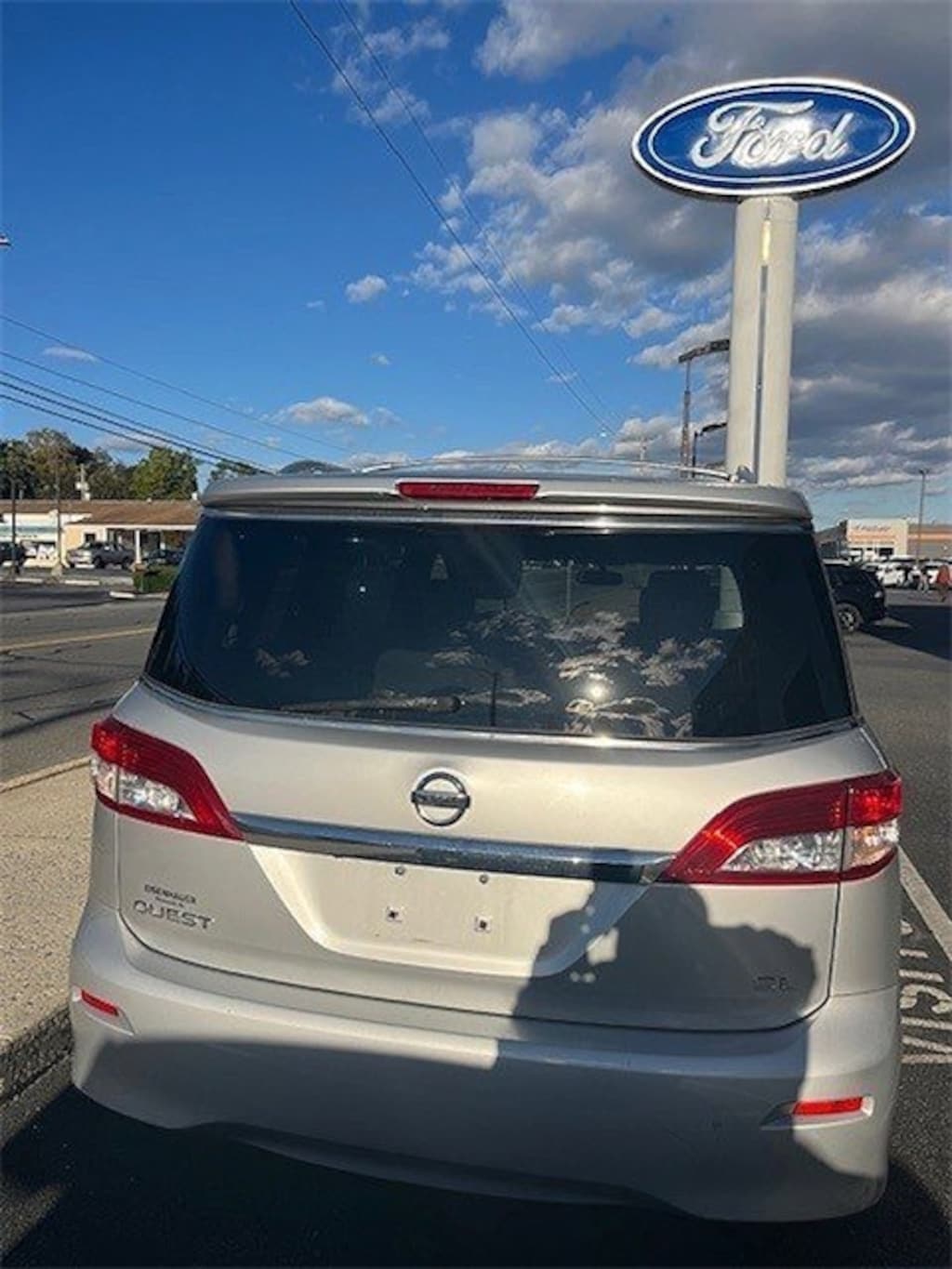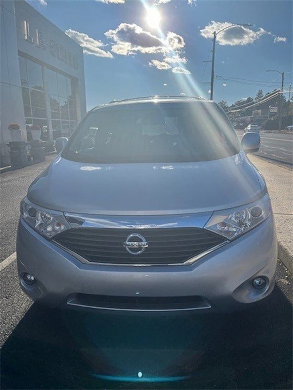 Brilliant Silver 2015 Nissan Quest 3.5 SL FWD CVT with Xtronic 3.5L 6-Cylinder DOHC 18" x 7" Alloy Wheels, 3rd row seats: split-bench, 4-Wheel Disc Brakes, 4.878 Axle Ratio, 6 Speakers, ABS brakes, Activation Disclaimer, Air Conditioning, AM/FM radio: SiriusXM, Anti-whiplash front head restraints, Auto-dimming Rear-View mirror, Automatic temperature control, Brake assist, Bumpers: body-color, Carpeted Floor Mats 1st/2nd/3rd Rows, Compass, Delay-off headlights, Driver door bin, Driver vanity mirror, Driver's Seat Mounted Armrest, Dual front impact airbags, Dual front side impact airbags, DVD Entertainment System, Electronic Stability Control, Exterior Parking Camera Rear, Four wheel independent suspension, Front anti-roll bar, Front Bucket Seats, Front dual zone A/C, Front fog lights, Front reading lights, Fully automatic headlights, Garage door transmitter: HomeLink, Heated door mirrors, Heated front seats, Illuminated entry, Leather Appointed Seat Trim, Leather Shift Knob, Leather steering wheel, Low tire pressure warning, Occupant sensing airbag, Outside temperature display, Overhead airbag, Overhead console, Panic alarm, Passenger door bin, Passenger seat mounted armrest, Passenger vanity mirror, Power door mirrors, Power driver seat, Power Liftgate, Power steering, Power windows, Quick Comfort Heated Front Bucket Seats, Rear air conditioning, Rear reading lights, Rear window defroster, Rear window wiper, Reclining 3rd row seat, Remote keyless entry, Roof rack: rails only, Roof Rail Cross Bars, Security system, Speed control, Speed-sensing steering, Speed-Sensitive Wipers, Splash Guards (2-Piece), Split folding rear seat, Spoiler, Steering wheel mounted audio controls, Tachometer, Telescoping steering wheel, Tilt steering wheel, Traction control, Trip computer, Turn signal indicator mirrors, Variably intermittent wipers, Wireless Headphones (2).